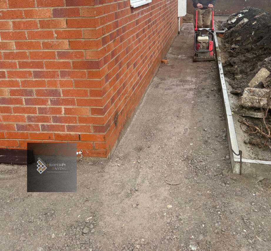 The existing surface was excavated to the required depth to allow for proper sub-base installation.Ground levels were adjusted to suit the property and surrounding areas, ensuring correct falls away from the building.