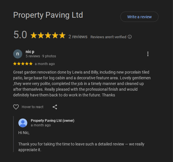 “Turned up on time, worked clean, and left the place spotless. The drive looks incredible.”